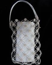七宝結びで小さなバッグを作りました。水引で作るとわりとしっかり形が整います。曲げても元に戻ろうとする力(張り)があるのでプワっとしています。