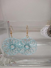 涼しげなブルーの花が耳元で揺れます。レーシーで軽やかですが、かなり大きめ存在感あります。 直径約40mm